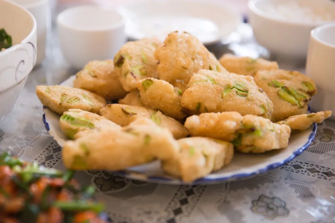 還有一道菜是我特別喜歡的,問(wèn)向?qū)Т蟾缢牟嗣鞘裁?,答曰:“蠶豆包包”,是當(dāng)?shù)厝说慕蟹ǎ娱L(zhǎng)得乖巧,名字也這么可愛(ài)呢。它更像是一道餐后小甜點(diǎn),軟軟的糯米包裹著酥松的蠶豆入鍋炸,外酥里嫩,吃的時(shí)候蘸少許白糖,口感極佳。