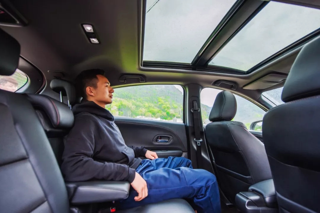 坐在后排,我仔細(xì)觀察起XR-V的全景天窗,它面積大,采光效果好,如果是白天的話坐在車?yán)镉幸环N通透、不受束縛的感覺(jué)。坐在駕駛室的海龍見(jiàn)我觀察天窗,還不忘提醒我,天窗及遮陽(yáng)板都可以電動(dòng)一鍵開(kāi)閉,邊說(shuō)還邊鄭重其事地演示了一遍,逗得我們直樂(lè)。