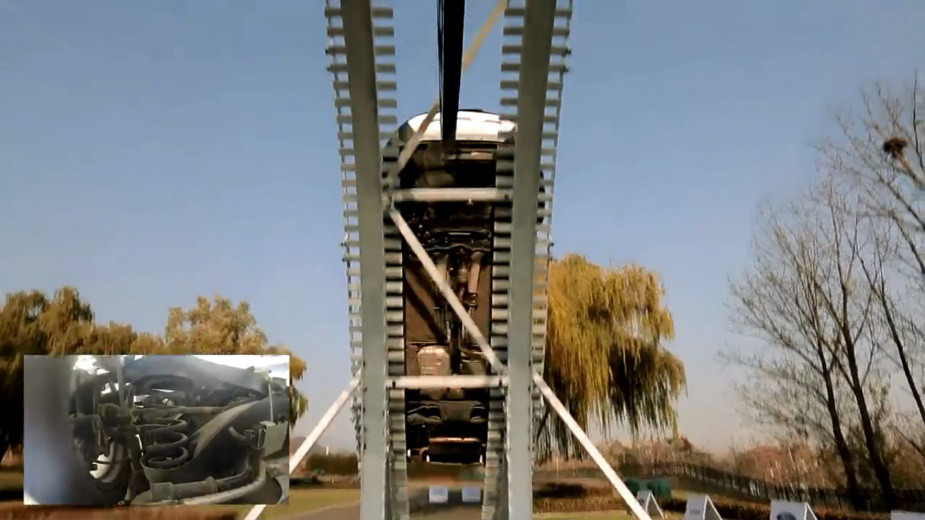 據(jù)了解,這個6米駝峰的最大爬坡角度達到了60°之高。沒概念?還記得當(dāng)年的“SUV爬坡門”么?據(jù)說那個讓SUV都“身陷囹吾”的坡,角度也只有30°左右。而坐在翼虎爬駝峰,真的做到了“四十五度角仰望天空“,畢竟你眼前再也沒有地面了……
