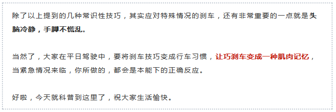當遇到緊急情況,就不要再惦記著“長距離”和“輕剎車”兩大要素了,記住,此時最重要的就是能剎得住車,要以最短時間、最短距離減速至停車。除了將剎車踩到底,有經(jīng)驗的老司機也會準備緊急并線,在剎車的同時準備好打方向盤,為避讓障礙物做好第二手準備。
